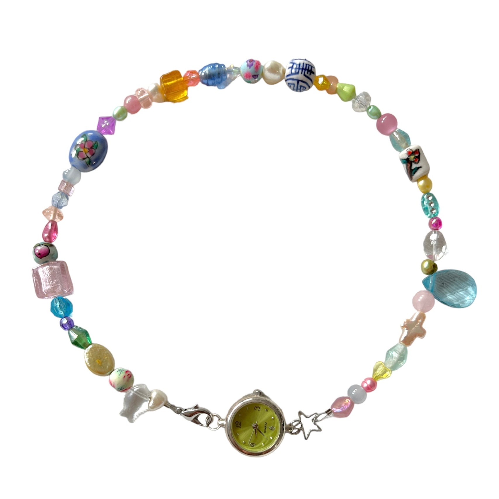 glass, pearl, and ceramic beads~