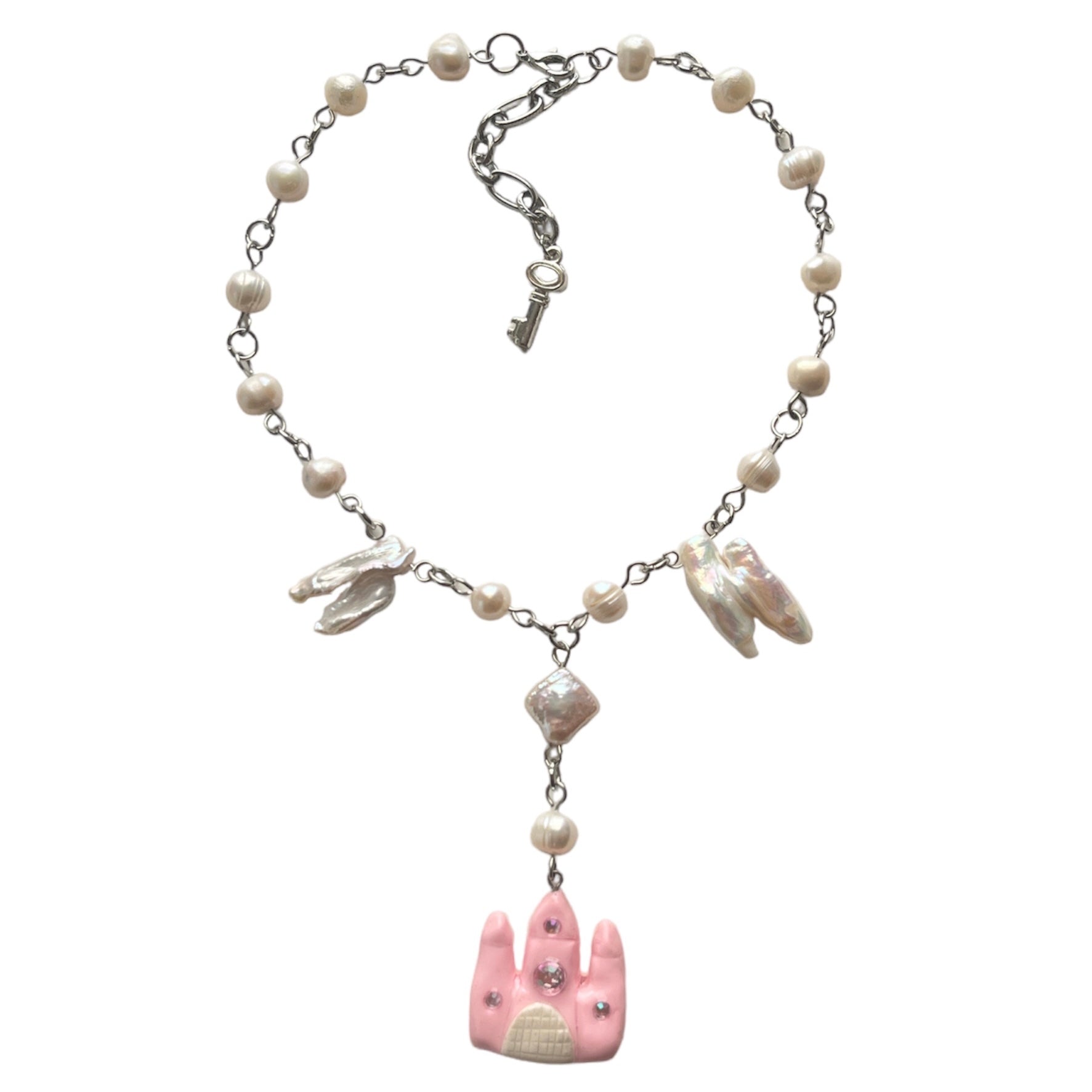 Made with freshwater + keshi pearls and a handmade clay charm <3